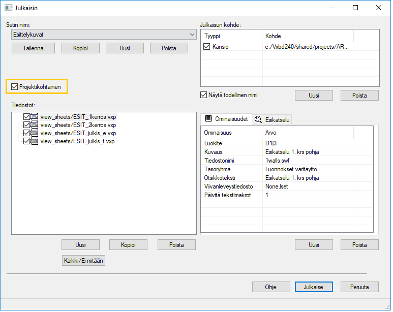 Tallenna julkaisusetin asetukset projektikohtaisesti