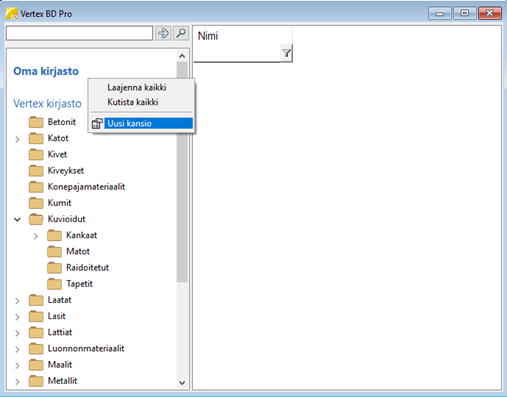 Aktivoi otsikko Oma kirjasto, jolloin hiiren oikean painikkeen takaa löytyy toiminto Uusi kansio.