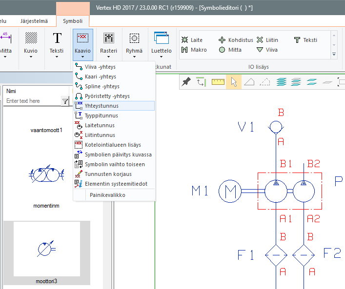 Symbolieditoria täydennetty Piirustus-välilehden toiminnoilla