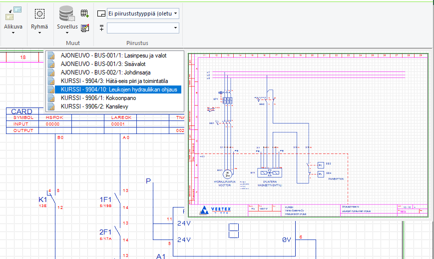 Laitetietojen haku ja valinta kaavion nimikkeille on merkittävästi joustavampaa ja havainnollisempaa.