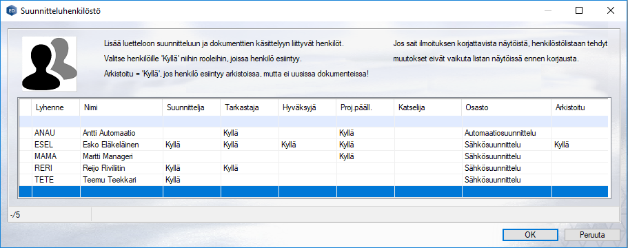 Käyttäjien nimet, puumerkit, ja osallistuminen eri roolien hoitamiseen voidaan nyt määritellä yhdessä hallintanäkymässä.
