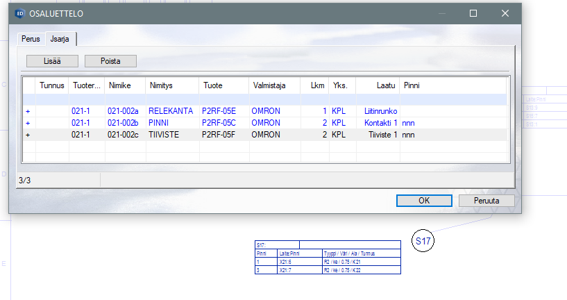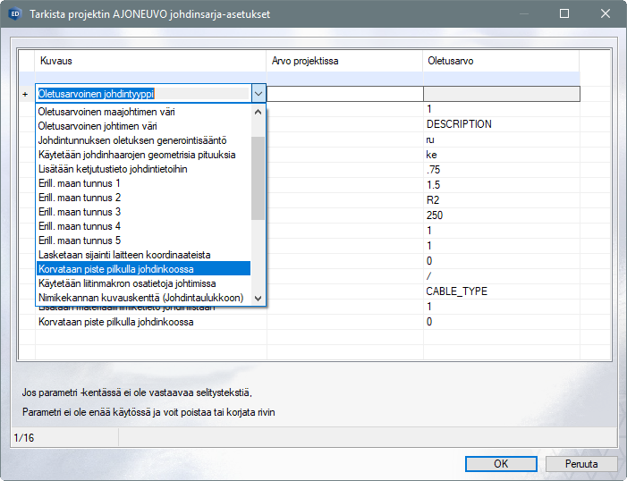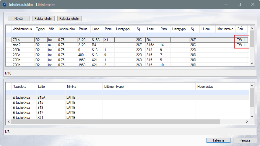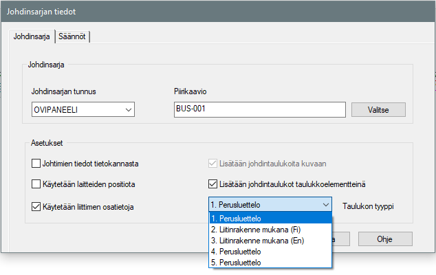 Johdinsarjan haarojen liitinsymbolien viereen lisättävän johdotustaulukon sisällön, tyylin ja myös kielisyyden voi nyt valita johdinsarjakohtaisesti. Tämä tapahtuu helposti johdinsarjadialogissa.
