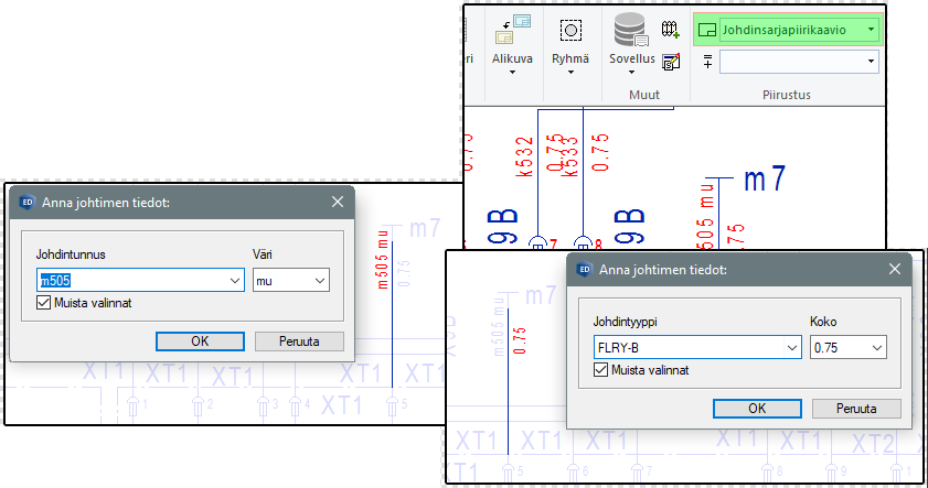 Kaavioiden johdinten ja laitteiden tunnusten syöttöä on muutettu helpommin opittavaan ja muistettavaan muotoon. Tunnusdialogien toimintaa ohjataan vahvasti piirustusten tyypillä ja lisäksi yhteysviivojen tyypillä aiempien asetusten sijaan. Näin toimintomoodien asettelu jää turhaksi ja toiminnot käyttäytyvät loogisesti eri tilanteissa.