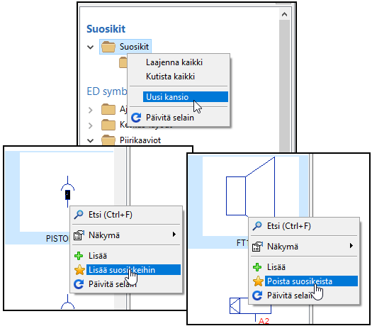 Jos usein käytetyt symbolit halusi nopeasti saataville, ne piti siirtää tätä varten lisättyyn selainkansioon tai sen alikansioihin. Nyt symbolit voidaan tallentaa aina rooliensa mukaisiin selainkansioihin, ja jokainen käyttäjä voi lisätä usein käyttämiensä symbolien valinnan Suosikit -kansioon tai sen alle lisättyyn alikansiopolkuun. Symbolien alkuperäinen tallennuspaikka ei muutu suosikki -valinnan vuoksi.