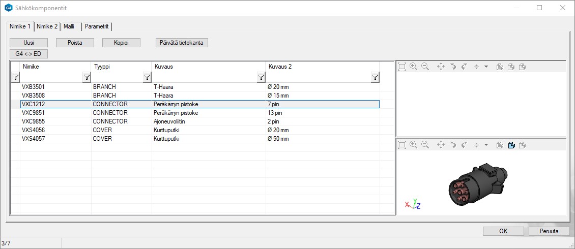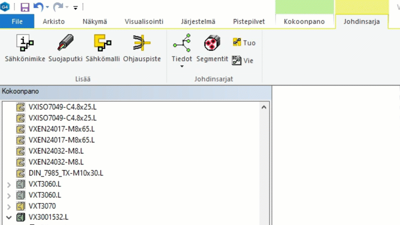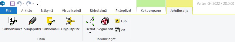 3D-Johdinsarjan reititystyökalut omalla välilehdellään (Vertex G4)