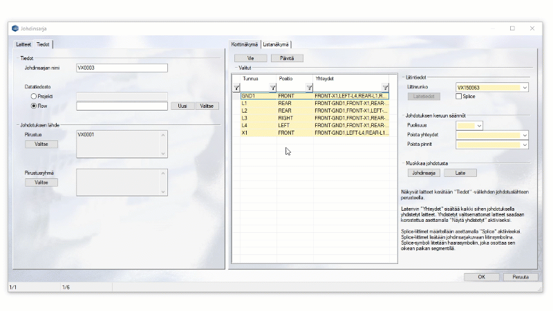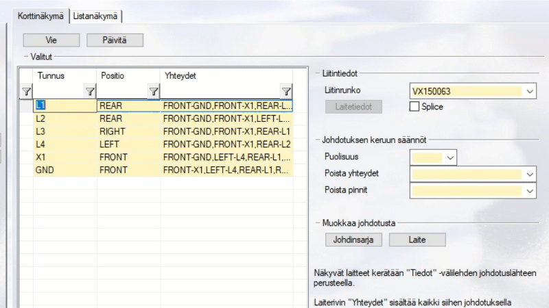 Johdinsarjan johdinreittien From-To -tyyppisen listauksen vienti Solidworksiin on nyt mahdollista.