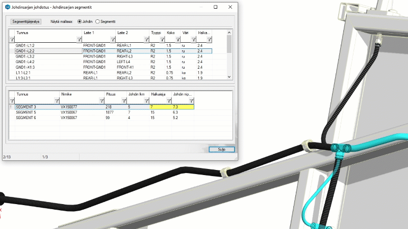 Johdinsarjan johdotusta pystytään nyt selaamaan tarkemmin myös G4:ssä. Käyttäjä pystyy tarkastelemaan missä johdinsarjan segmenteissä johdotus kulkee ja mikä on kunkin segmentin paksuus. Johdinreittien paksuudelle omat tarkastelutoiminnot myös Vertex ED:ssä.