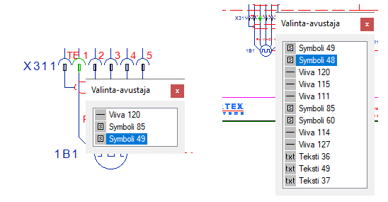 Lisättiin valinta-avustaja, joka helpottaa tietyn kuvaelementin valinnassa kun alueella on suuri määrä muita kuvaelementtejä. Valinta-avustaja tulee voimaan kun hiiren kursorin jättää hetkeksi lepäämään kuvaelementtien päälle. Lyhyen odotuksen jälkeen hiiren kursorin kuvake vaihtuu hiiren kuvakkeeksi, jonka jälkeen valinta-avustajan valintadialogi avautuu hiiren toisen napin painalluksella.