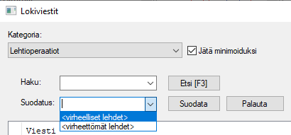 Lokiselaimeen on lisätty oletussuodatin lehtisarjaoperaatiot-lokikategorian viesteille. Suodattimen avulla voidaan suodattaa listalta pois kaikki virheettömät lehdet.