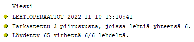 Esim. Tarkastettu 3 piirustusta, joissa lehtiä yhteensä 6. Löydetty 65 virhettä 6/6 lehdeltä.