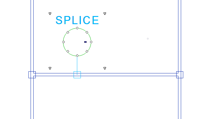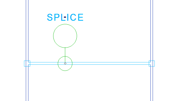 - Splice-liitin voidaan myös yhdistää ylimääräiseen solmupistesymboliin, joka katkaisee segmentin kahdeksi osaksi (Toimii myös vanhemmilla 2D-johdinsarjatyökaluilla!).