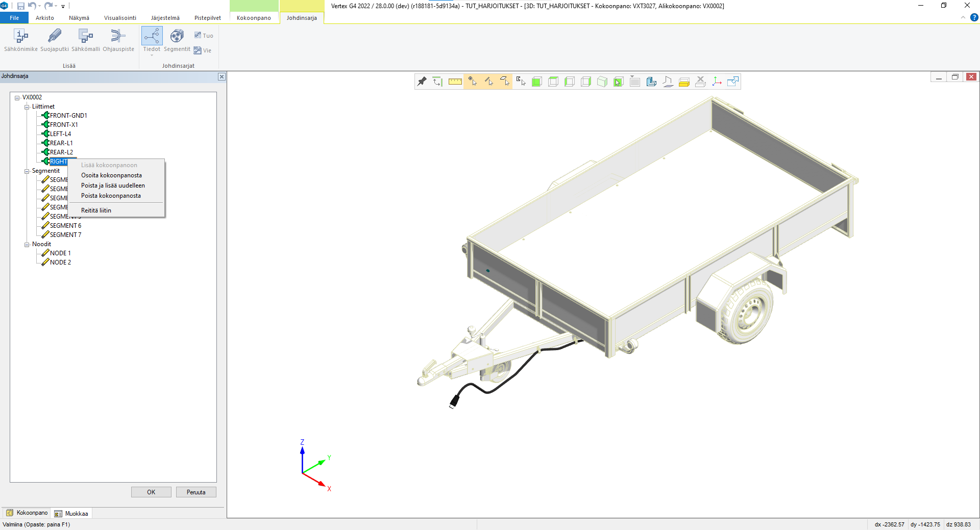 - Kokoonpanoon liitetään tuotu johdinsarjadata.