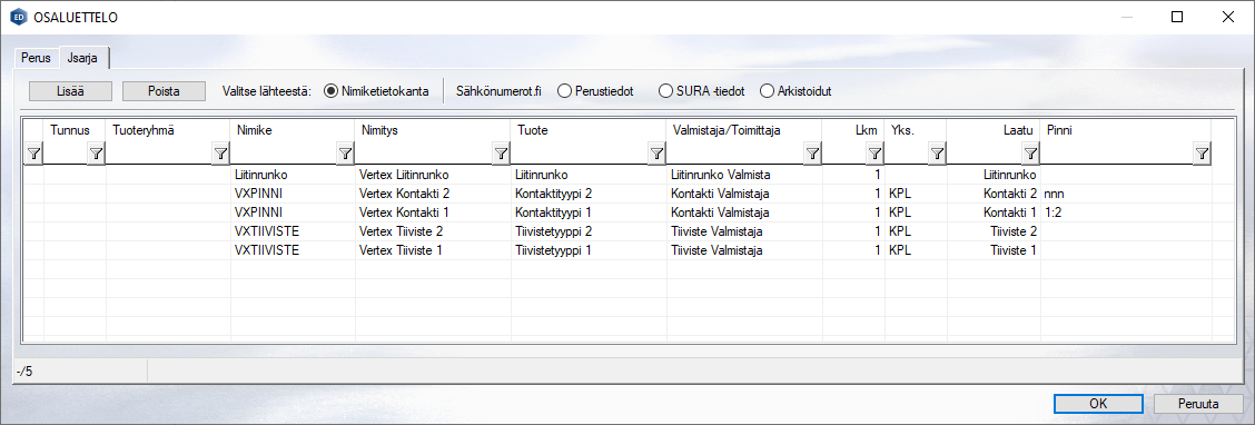 | FORMAT | Määritellään Johdinosion sisältö johdinsarjan johdotus tietokannasta. Sarakkeen erotinmerkki '¡' #FORMAT# |