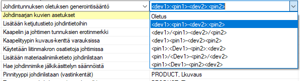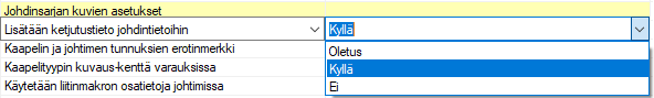 Johdinsarjasovelluksen asetukset löytyvät Vertex ED:n Suunnittelu-välilehdeltä valinnan Johdinsarjat - Tiedot - Johdinsarjasovelluksen asetukset takaa.