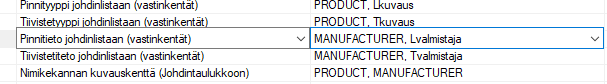 Asetusten muuttaminen tapahtuu kunkin asetuskentän kulmanuolen takaa löytyvän listan valintalistan kautta tai käsin kirjaamalla.