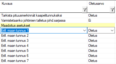 Maadoituksen asetusten kautta käyttäjä voi määrittää tunnukset 20:lle maadoituspisteen tunnukselle. Oletusarvoisesti ohjelma tulkitsee pienellä m-kirjaimella ja isoilla GND-kirjaimilla alkavat laitetunnukset maadoituspisteiksi.
