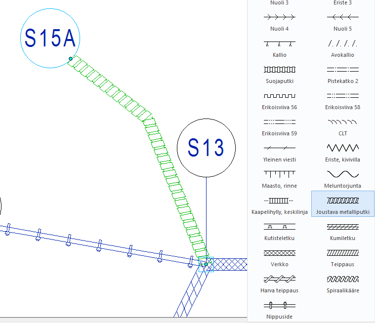 Uusia viivatyyppejä valintalistassa.