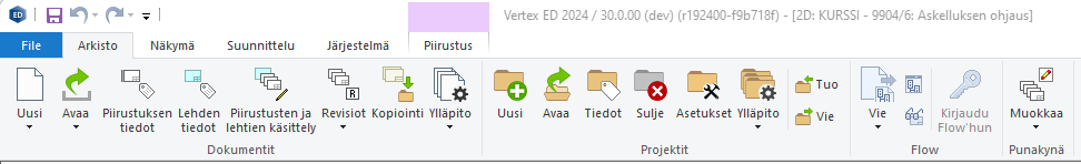 - Piirustuksen perustaminen projektille. Piirustus tallennetaan Vertex ED:n arkistoon.