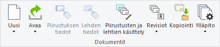 Ohjelman Arkisto-välilehdeltä löytyvien piirustustoimintojen avulla teet ja hallitset piirustuksia. Piirustustoimintojen avulla voit: