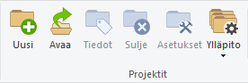 Ohjelman Arkisto-välilehdeltä löytyvien projektien käsittelyn toimintojen avulla teet ja hallitset projekteja. Projektitoimintojen avulla voit: