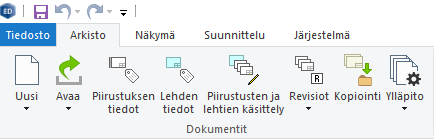 Piirustustoiminnot löytyvät ohjelman Arkisto-välilehden kohdasta Dokumentit.