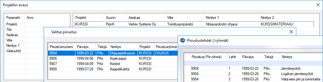 Kopiointi-toiminnon avulla kopioit piirustuksia ja tietokantoja projektien välillä sekä kopioit saman projektin piirustuksia uusille piirustusnumeroille.