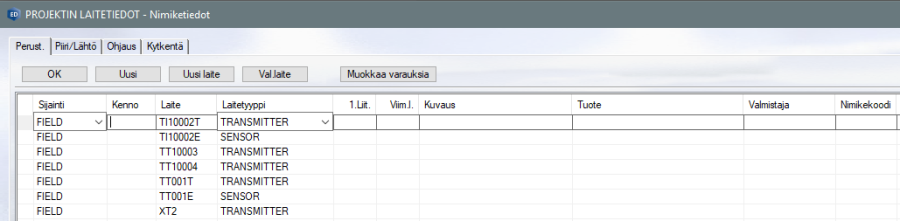 Kojeluettelon tiedot voivat heti generoinnin jälkeen sisältää vain laitteen perustietoja: tunnuksen ja yleisen komponenttityypin. Tarvittaessa tietoja voidaan täydentää (valmistaja, pinninumerointi, yms..). Näihin tietoihin voidaan haluttaessa viitata pohjakuvissa. Tiedot voidaan päivittää erillisellä päivitystoiminnolla kuviin ilman erillistä generointia.