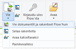 Toiminto avaa dialogin, jonka kautta tehdään kaikki dokumenttien ja rakenteiden siirtäminen Flow’hun. Saman dialogin kautta myös perustetaan uusia Flow-dokumenttikortteja ja uusia rakenteita, joita muokataan Selaa rakenteita -toiminnon kautta.
