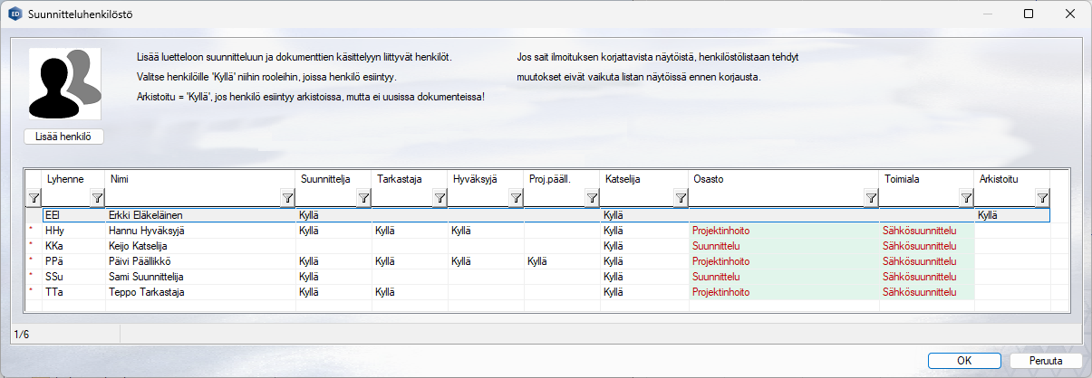 Henkilöstöluetteloon on nyt mahdollista kirjata tekijän toimiala, aiemman Osasto-lisätiedon lisäksi.