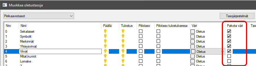 Tasot: Mahdollisuus pakottaa tason väri kaikille elementeille