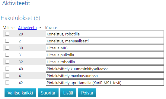 Aktiviteettien avulla tuoterakenteeseen voidaan lisätä työvaiheita.