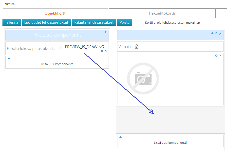 (4) Raahaa nimikekortin muokkaussivulla PREVIEW_IS_DRAWING-komponentti esikatselukuvan alle