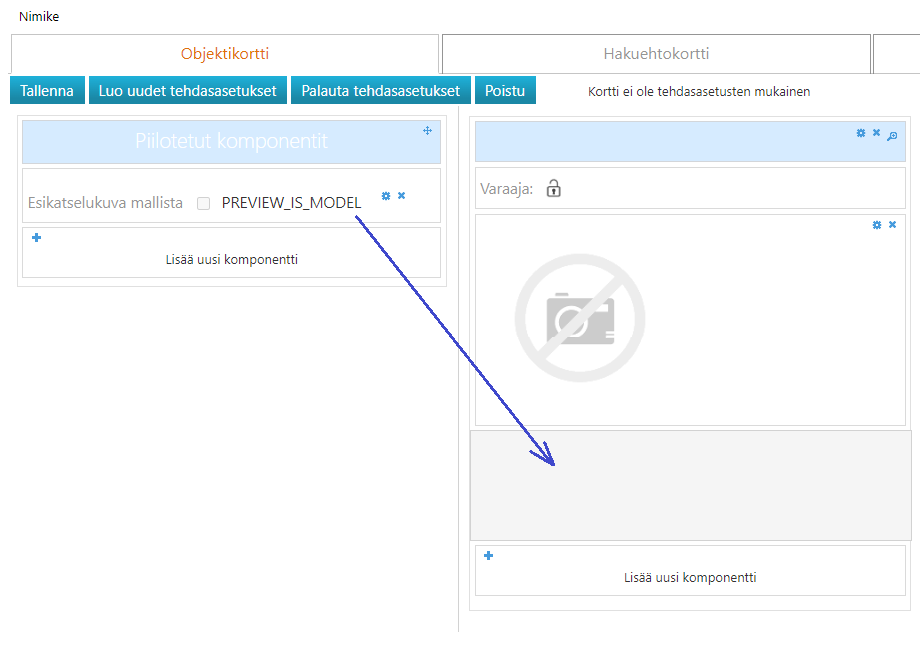 (11) Raahaa nimikekortin muokkaussivulla PREVIEW_IS_MODEL-komponentti esikatselukuvan alle