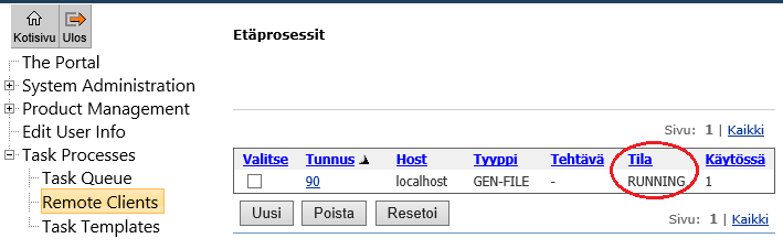 - IDLE (hetkellinen vaihe kun prosessi käynnistetään käsin uudelleen)