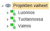 - Näkymän avulla voidaan helposti seurata eri projektien etenemää.