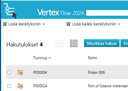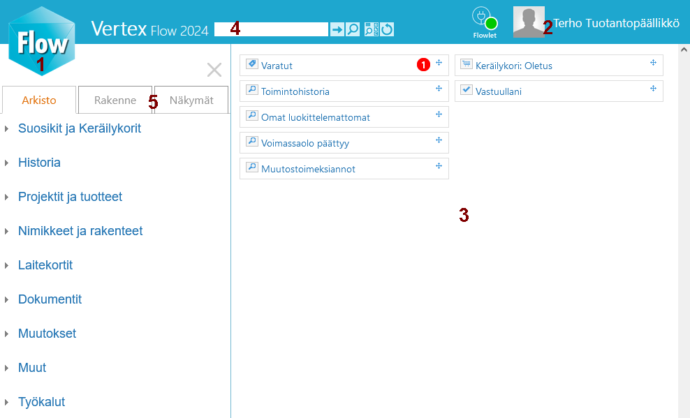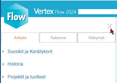 Arkiston avulla voit selailla Flow'ssa olevia objekteja.