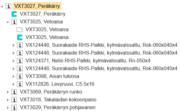 Rakenne esittää viimeisimmän rakenteellisen objektin rakenteen puumaisessa muodossa.