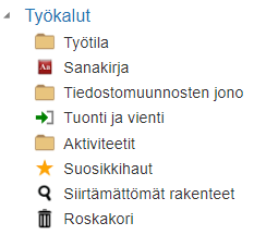 Alasivuilta löytyy linkki ko. objektia tai työkalua koskeviin ohjeisiin.