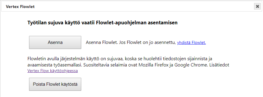Sinun pitää hyväksyä Flowletin käynnistys selaimestasi. Tässä on siihen ohje Flowlet-tuettujen selainten osalta: