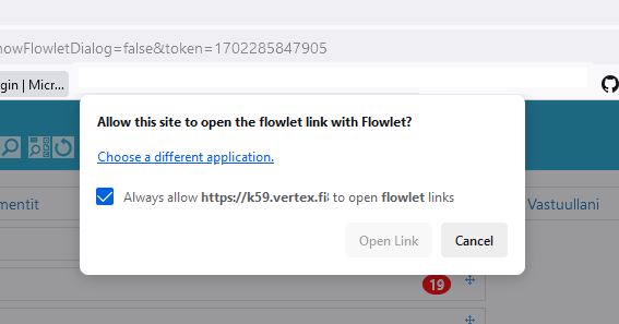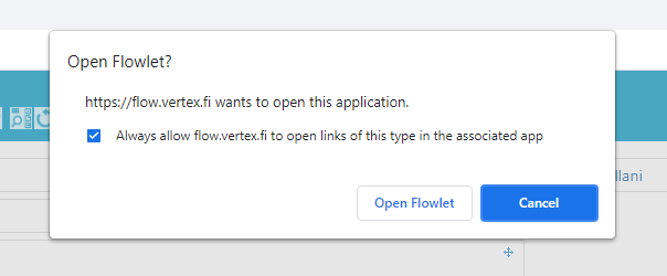 Hyväksy Flowletin avaus selaimesta