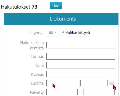 Jos haet objekteja hakukortin avulla, voit joko hakea luokitteen