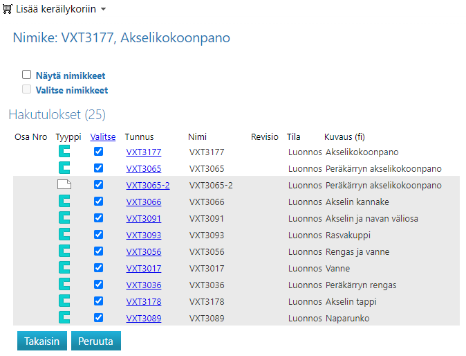 Hakutulokset voit siirtää keräilykoriin.