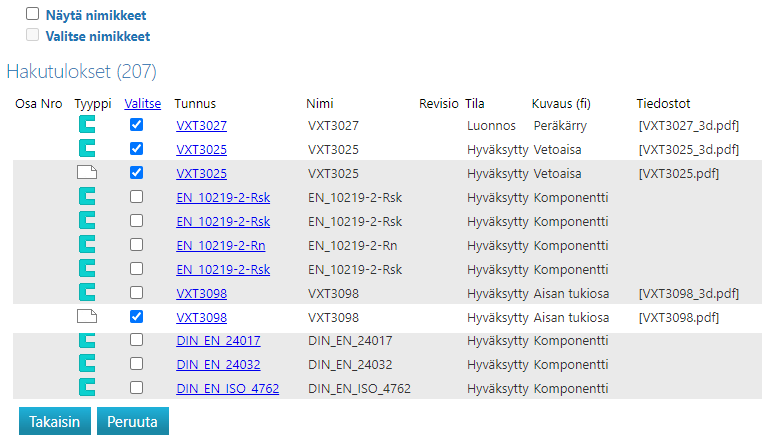 Toiminto on käytettävissä, kun olet listannut rakenteesta löytyvät dokumentit.