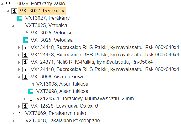 Tuoterakenteista yleisesti: Tuoterakenteet.