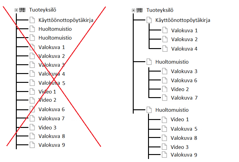 - Voit esimerkiksi liittää tuoteyksilöön tärkeimmät objektit, joihin sitten liität muita objekteja.
