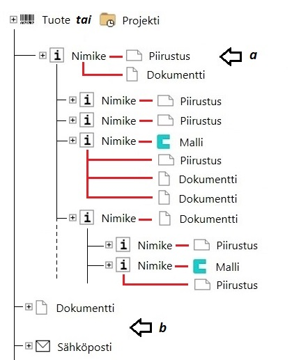 - Päänimikkeen rakennetta seuraamalla päästään käsiksi malleihin, piirustuksiin ja yksittäisiin nimikkeisiin liittyviin dokumentteihin.