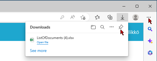 Jos Downloads/Ladatut-valikon avaava nuolikuvake