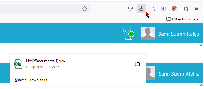 - Flow'n lataamat raportit näkyvät selaimen vasemmassa alakulmassa.