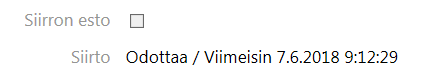 Kun nimike on siirtynyt ERP-järjestelmään, näet Siirto-kentässä päivämäärän, koska siirto on tehty.
