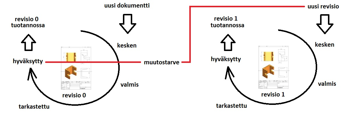 Uusi revisio syntyy Luonnos-tilaisena, ja se etenee työkierron mukaisesti hyväksyttyyn tilaan.